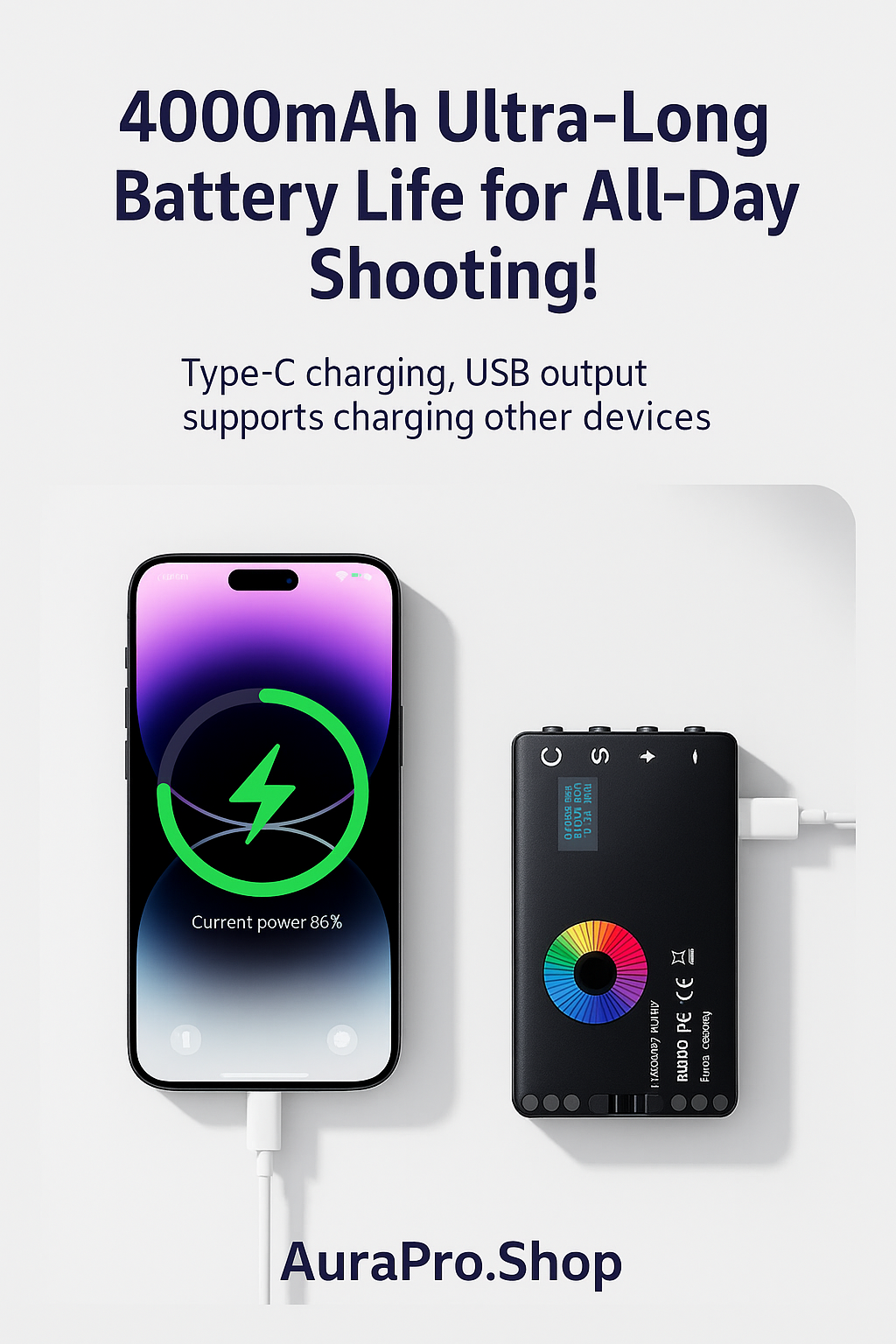 With a 4000 mAH battery, you can shoot upto 16 hours or shoot for 8 hours while charging your phone from 0 to 50% once
