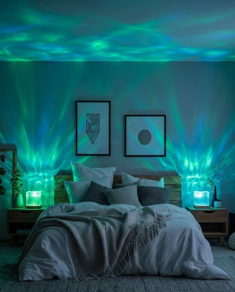 Wählen Sie zwischen den Modi „Aurora Borealia“, „Wasserfall“ oder „Rotierende Lampe“.